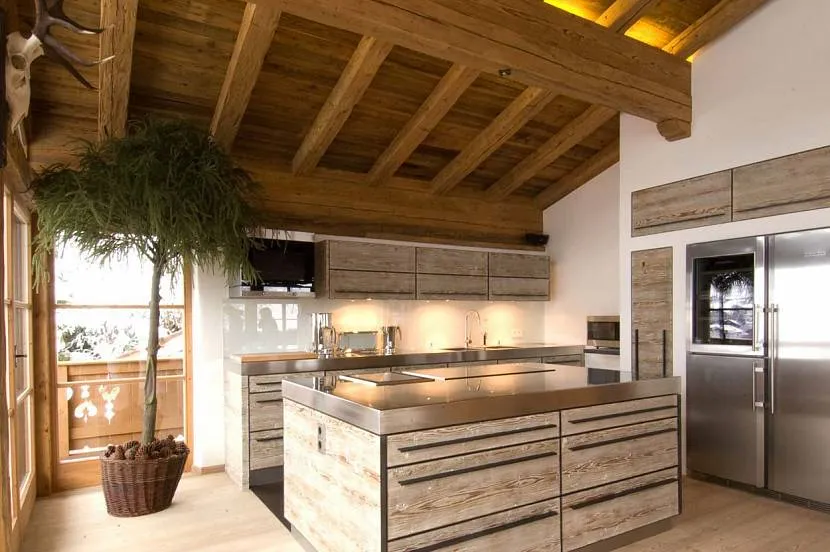 Современная кухня в деревянном домеИсточник ms-grup.ru/