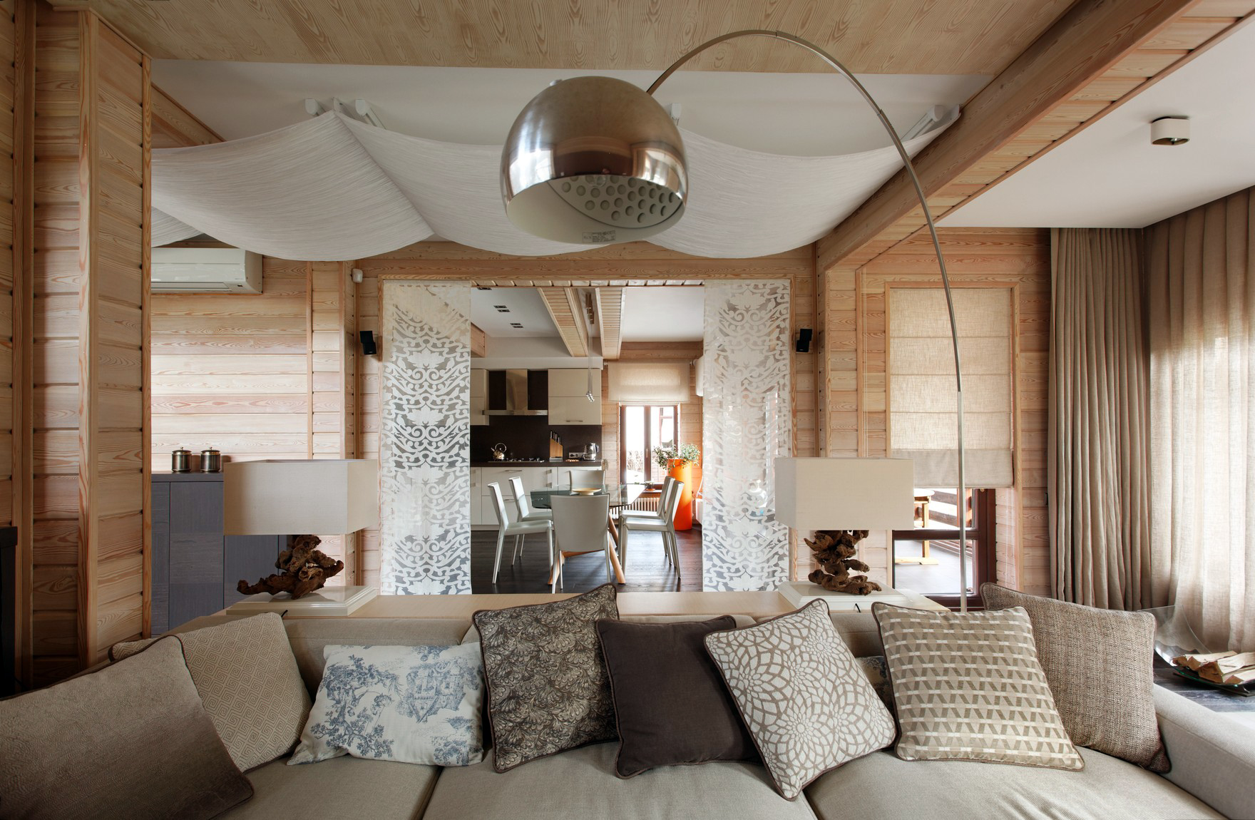 Искусственное освещение в эко-интерьерах делают мягким и рассеянным. Подойдут светильники двух типов: