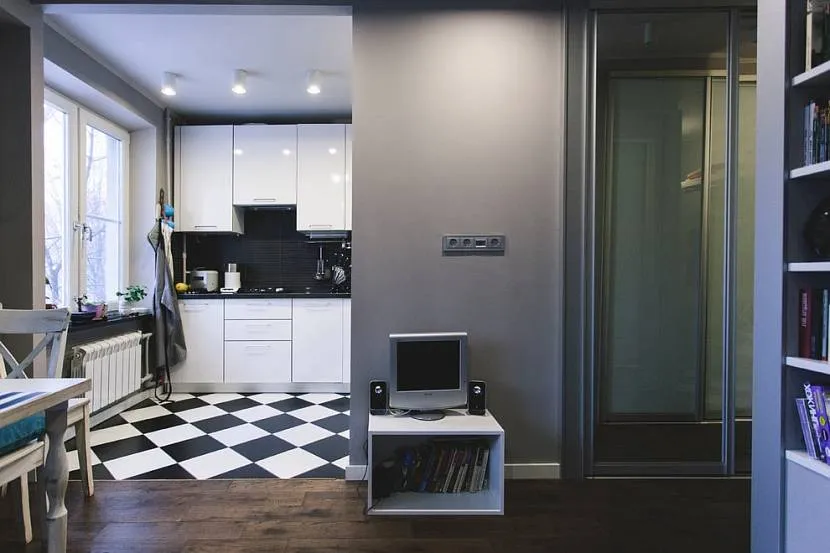 В процессе перепланировки частично или полностью сносится стена между кухней и комнатой, и получается довольно просторное общее пространство