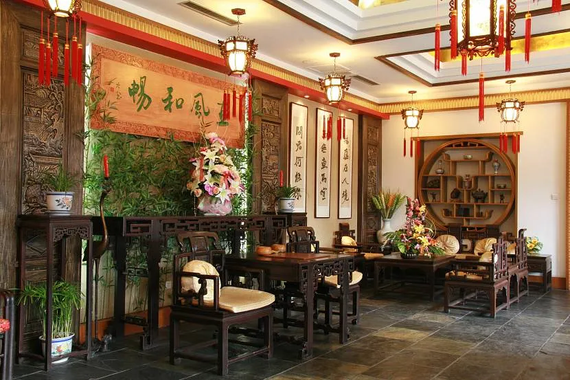 Дополнить декор помогают характерные для Китая рисунки, стены украшают картины и панно с изображением иероглифов.