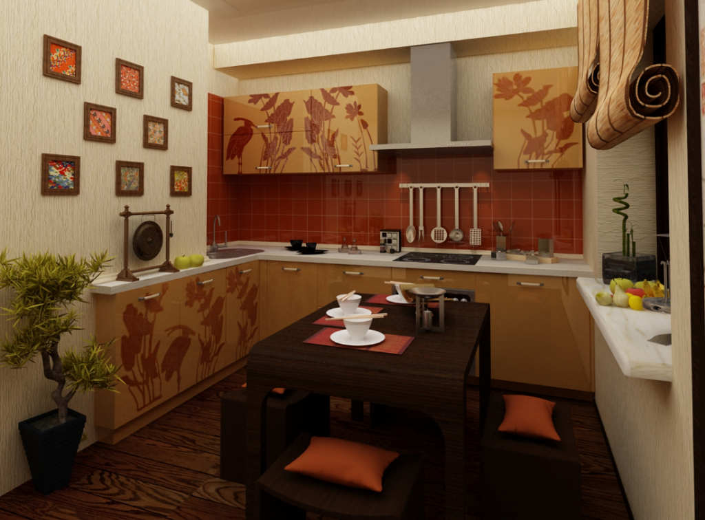 Применение декора в интерьере кухни в китайском духе. Фото: dizainkyhni.com