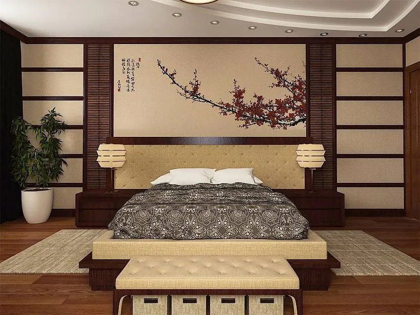 Элементы декора в спальне восточной стилистики располагаются не хаотично, как может показаться на первый взгляд, а подбираются таким образом, чтобы создать в комнате гармоничную обстановку. Каждый предмет дизайнерского оформления олицетворяет определенный уровень жизни и призван даровать обитателям комнаты счастье, удачу, крепкое здоровье и благополучие.