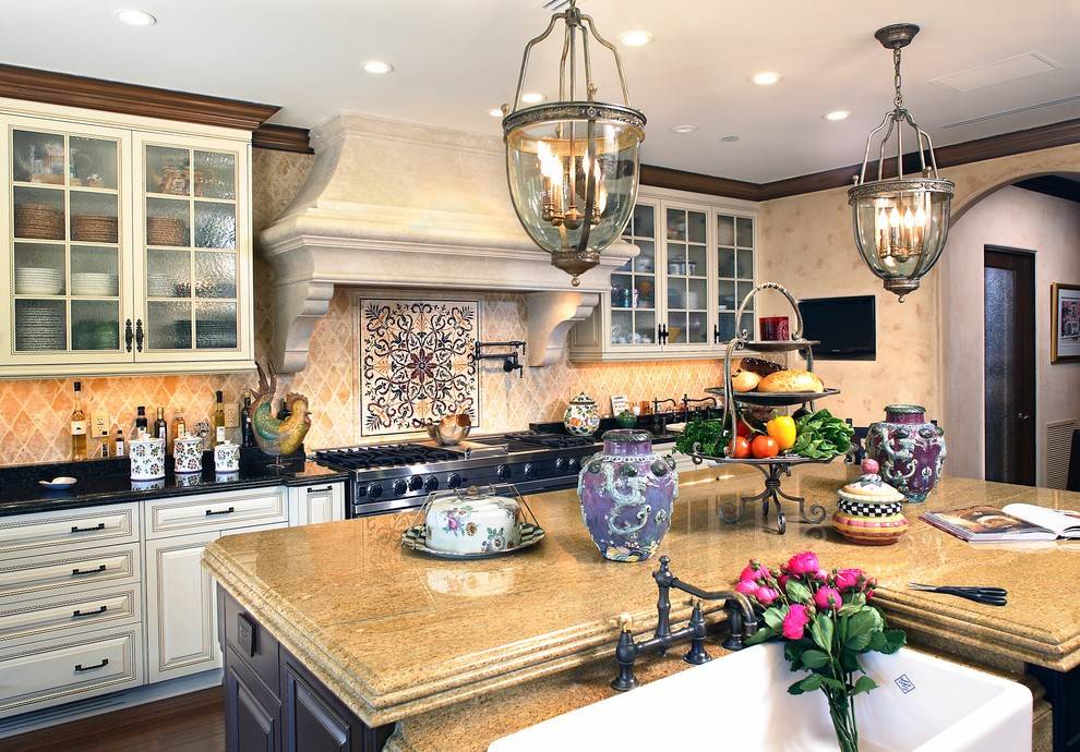 Как можно видеть на фото, для кухни в средиземноморском стиле очень важен свет. В России ясных солнечных дней намного меньше, чем в Италии или Франции, поэтому естественного освещения от окон и одного источника будет недостаточно