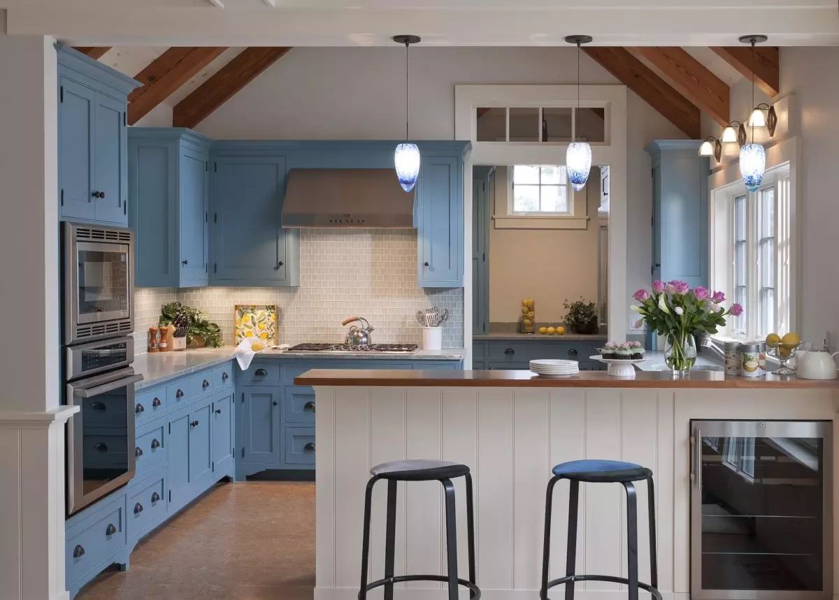 В современных морских кухнях мебель может служить одним из основных акцентов