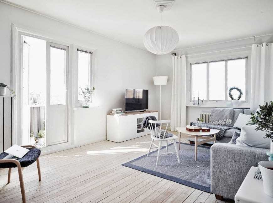 Завершив ремонт гостиной в скандинавском стиле можно переходить к ее внутреннему наполнению