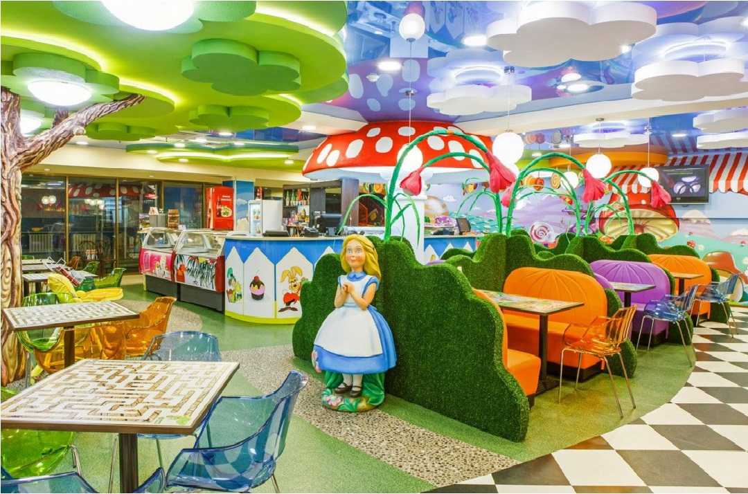 детское кафе. В нем преимущество отдается ярким краскам, качественным рисункам, изображающим популярных мультяшных персонажей