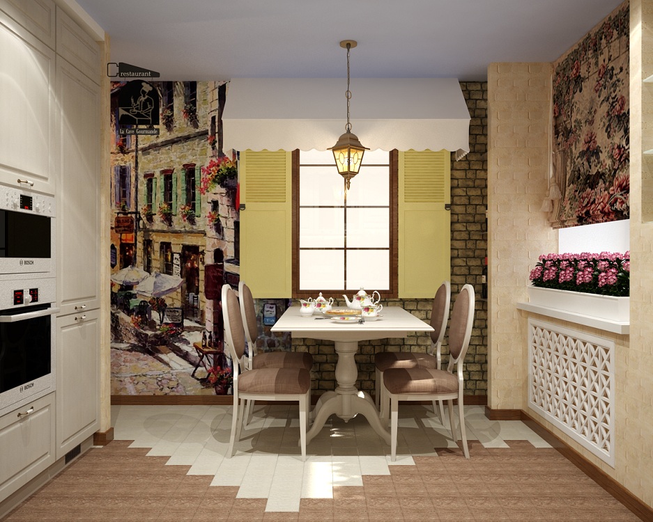 Для того чтобы создать уютный интерьер, возбуждающий аппетит, необходимо грамотно подобрать оттенки. Так, например, для кухни в стиле французской кофейни подойдут: