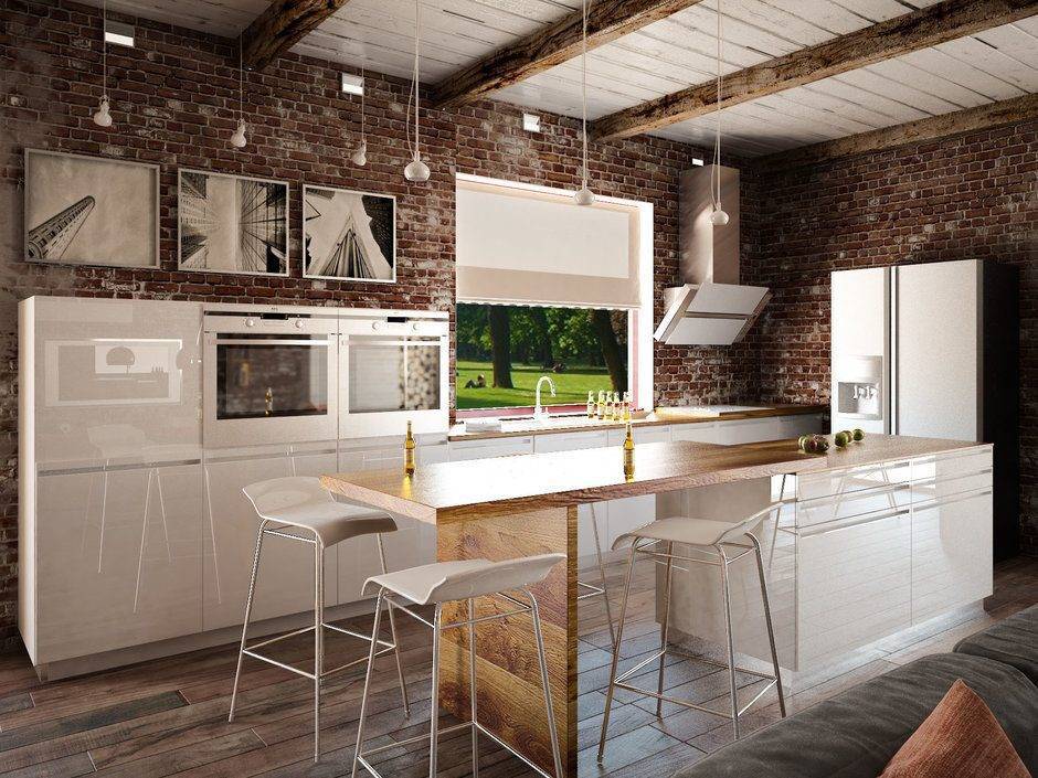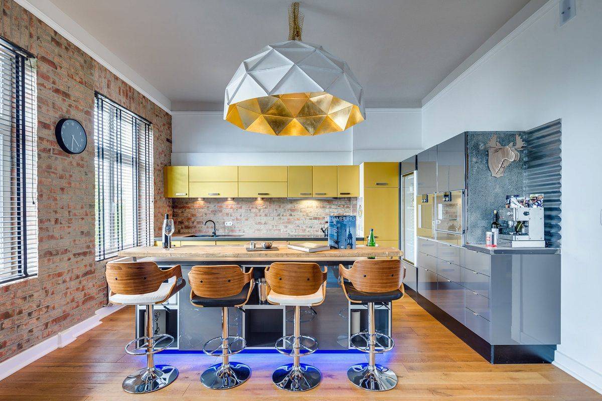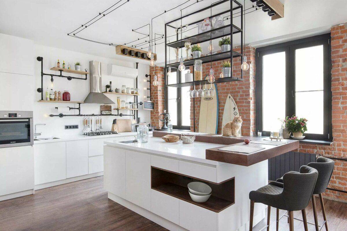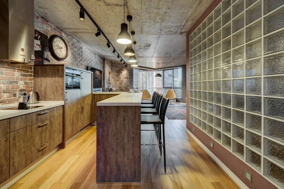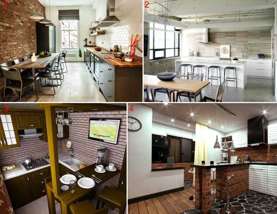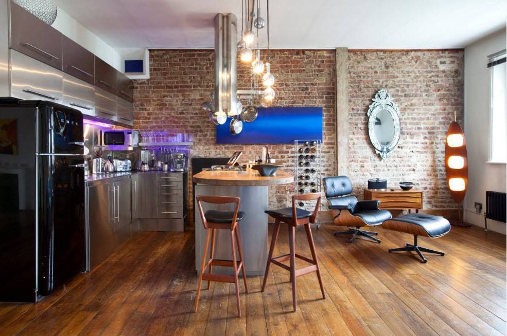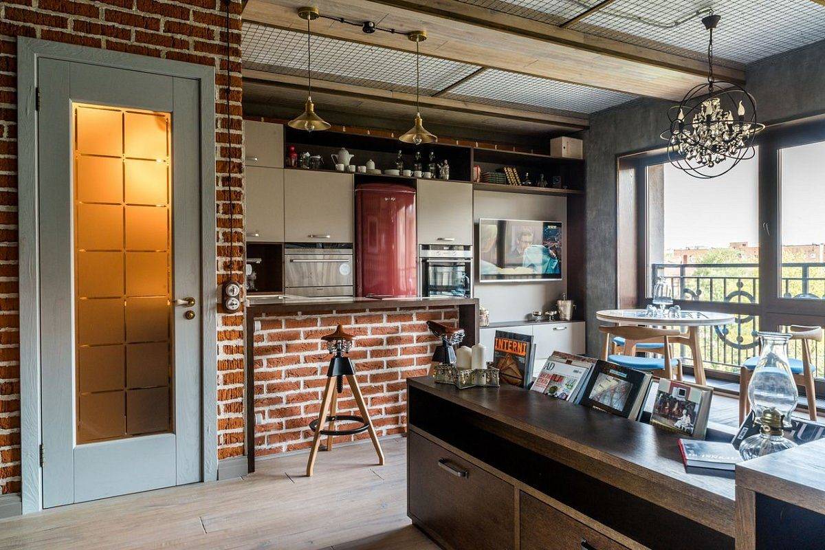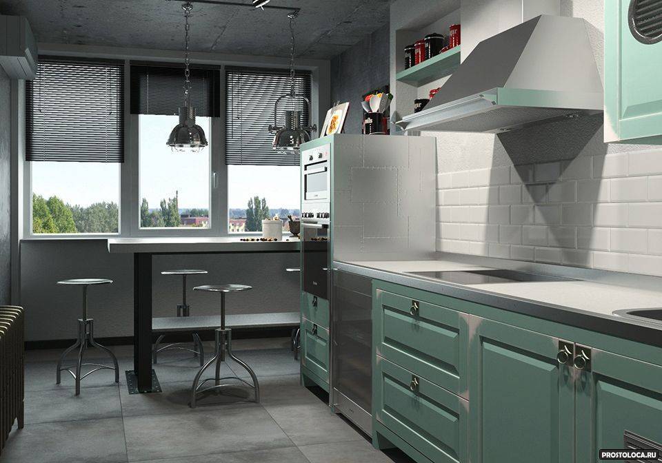 Если кухня имеет небольшую площадь, а хочется оформить ее в модном стиле, то есть вариант выгодного объединения с лоджией – площадь значительно увеличится, а заодно будет больше света. Более правдоподобно смотрится объединенная кухня с гостиной – именно это сочетание создает иллюзию промышленного помещения.