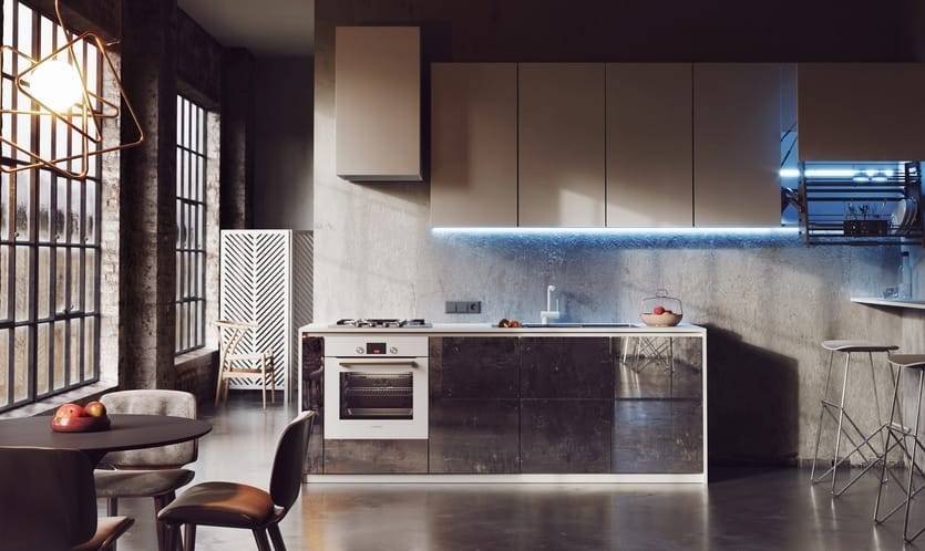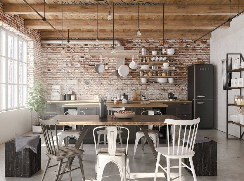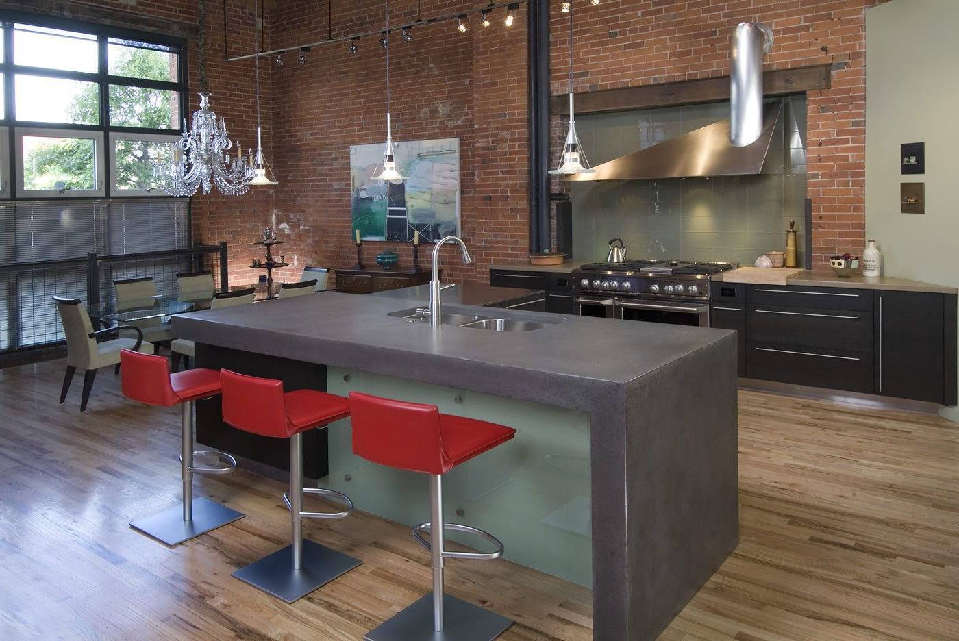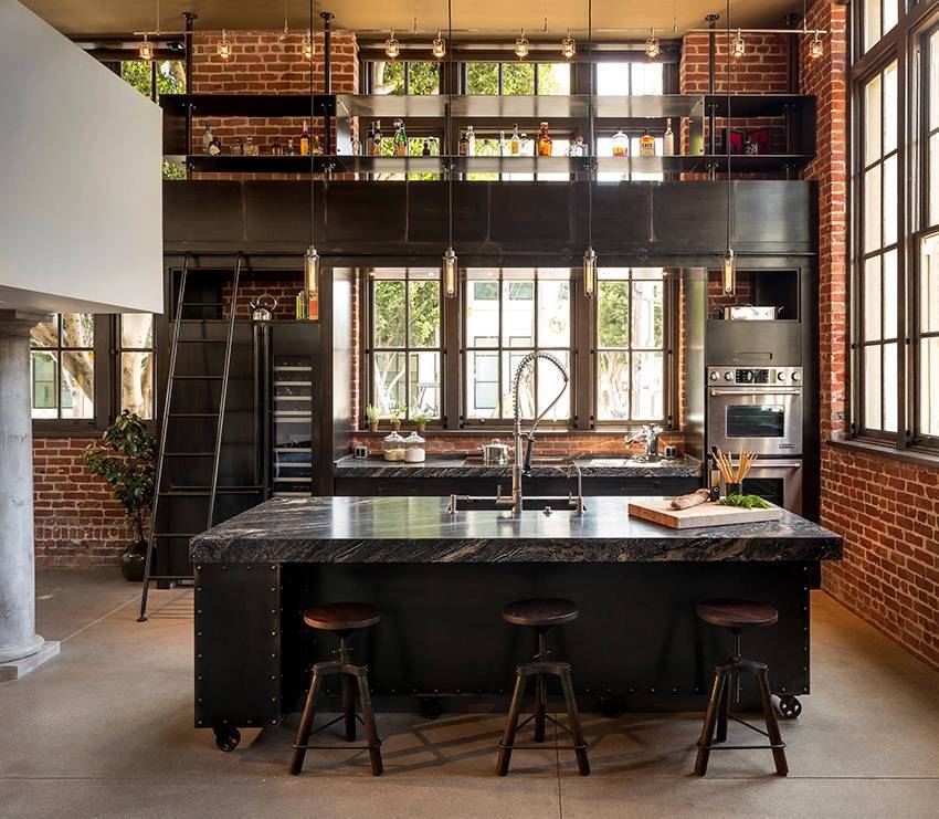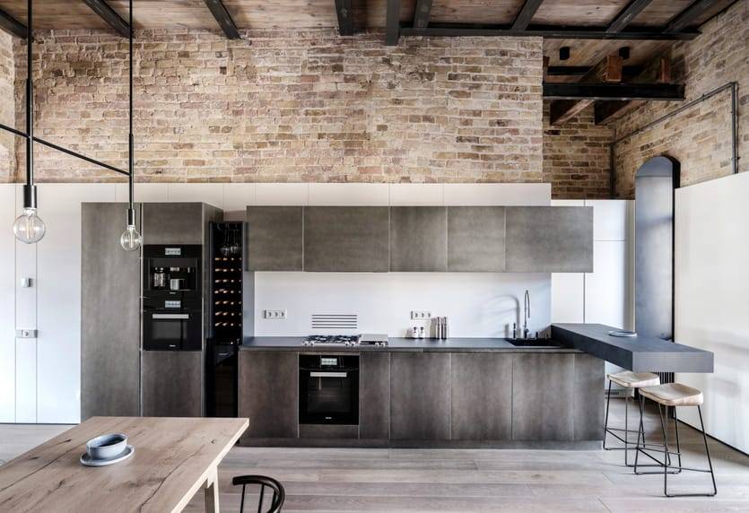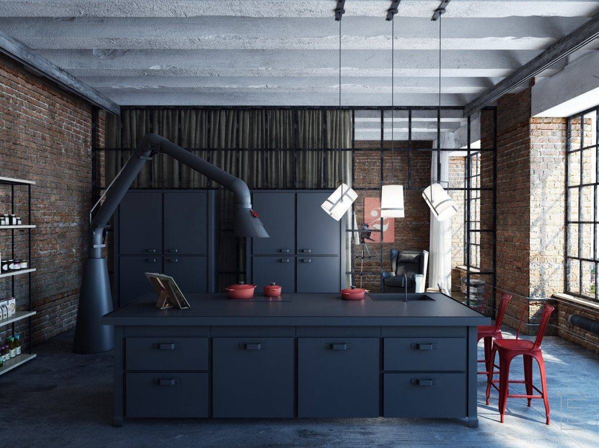 К основным характеристикам кухни в стиле лофт можно отнести следующее: