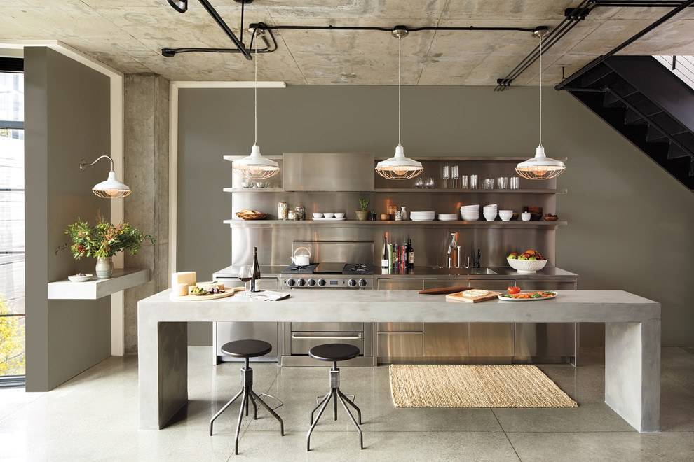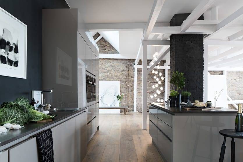 При подготовке дизайн-проекта для кухни под «loft» важно найти гармоничный баланс между натуральными и ультрасовременными материалами. Мебель надо подбирать непритязательную без изысков, но удобную и современную. А текстиль, освещение и аксессуары должны соответствовать общей концепции, дополняя и не перенасыщая ее собою