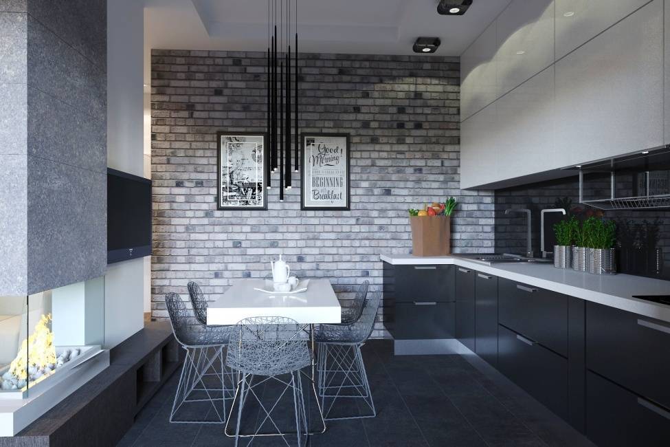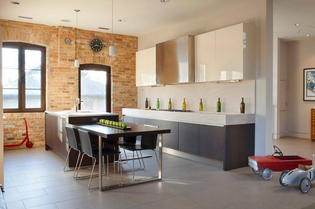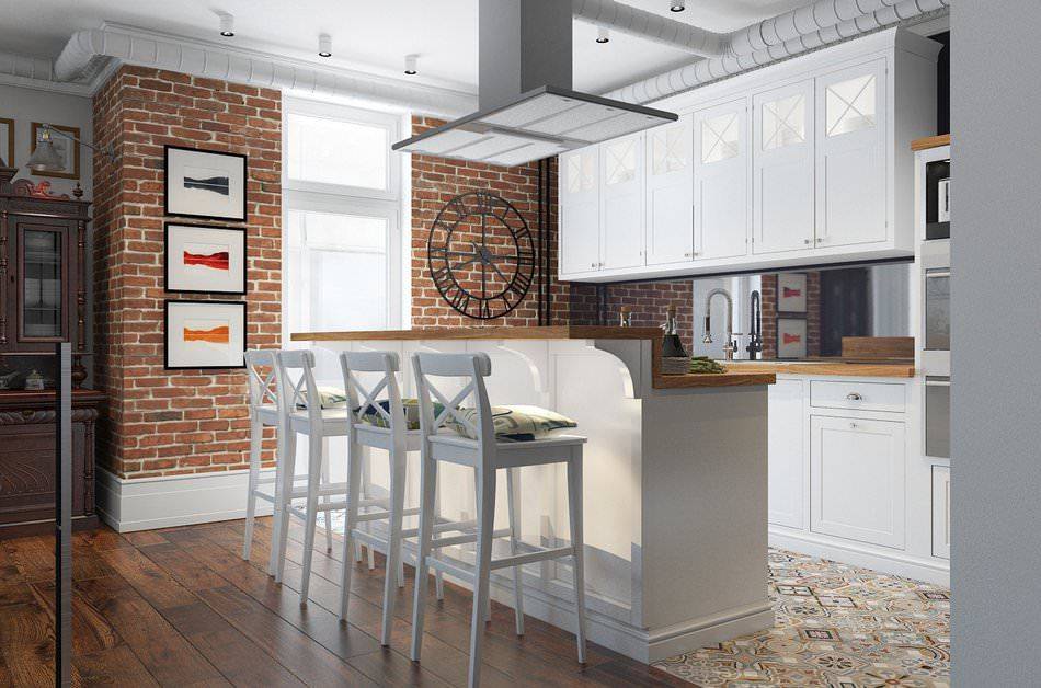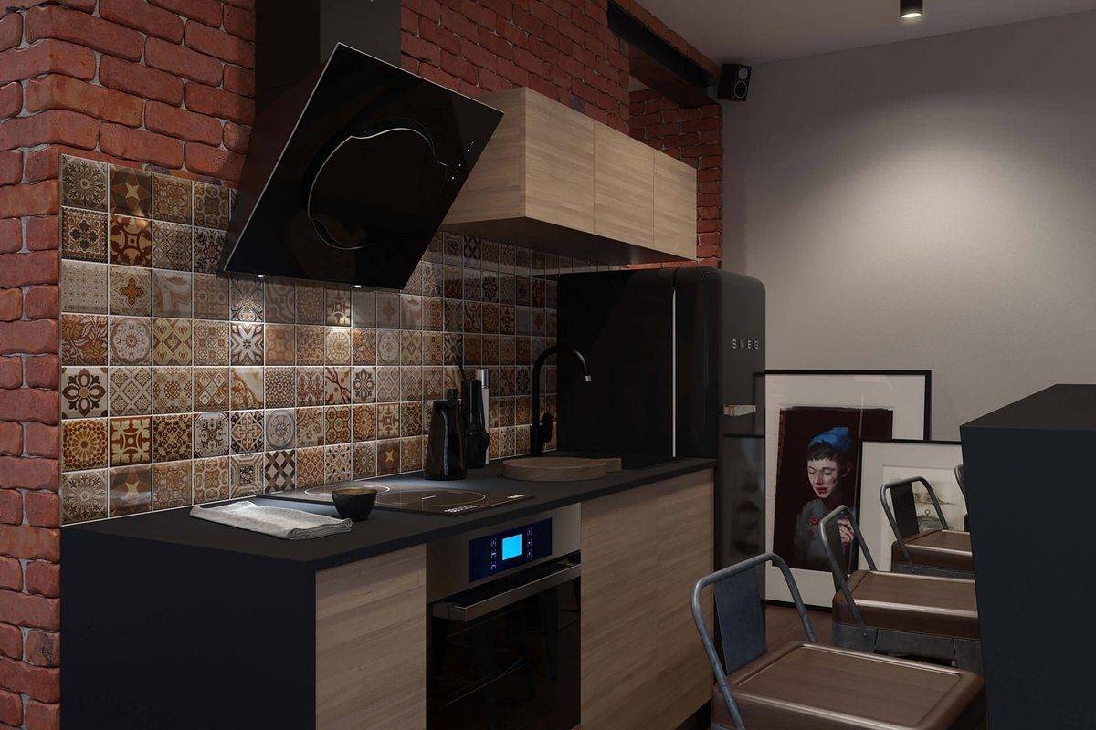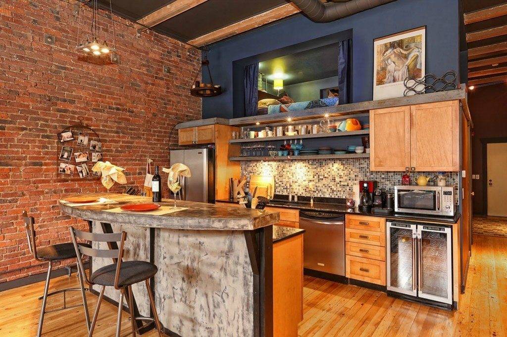 Фартук. Традиционным решением для лофта считается кирпичная кладка, ее имитация или плитка в форме прямоугольника