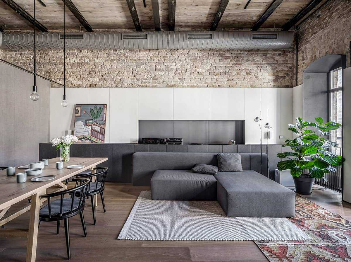 Чтобы ваш дизайн выглядел гармонично, важно помнить, что стиль лофт в интерьере – это такое дизайнерское направление, где при организации жилого пространства обязателен сдержанный подход. Сюда не нужно покупать много мебели, в числе которых будет плюшевый диванчик, яркое кресло или цветной ковер. Забудьте про тяжёлые шторы, статуэтки из фарфора и сувенирчики, расставленные по полкам, аляпые обои в розочку, пейзажи в огромных резных рамах, кружевные салфетки и ситцевые скатерти, все это будет выглядеть нелепо