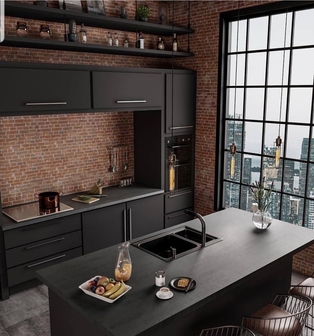 Главная концепция стиля лофт на кухне заключается в создании максимально открытого пространства и атмосферы нахождения в производственном помещении, наполненном светом и воздухом. Добиться такого эффекта, вместе с использованием других приемов, позволяет свободный от текстиля оконный проем.