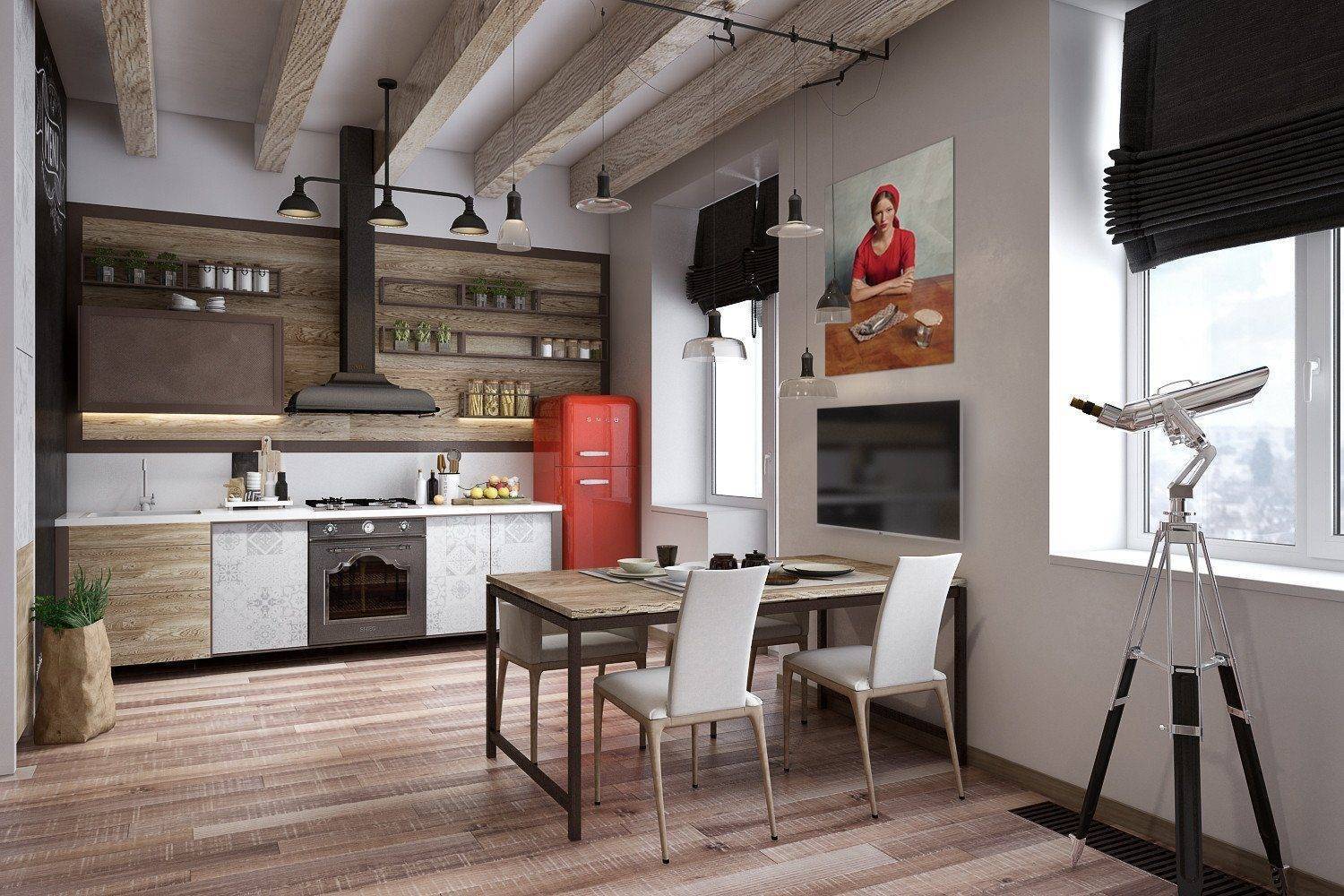 Если габариты кухни скромные, а «залофтить» ее непременно хочется, не беда! Первый вариант — ограничиться некоторыми элементами, присущими стилю либо….