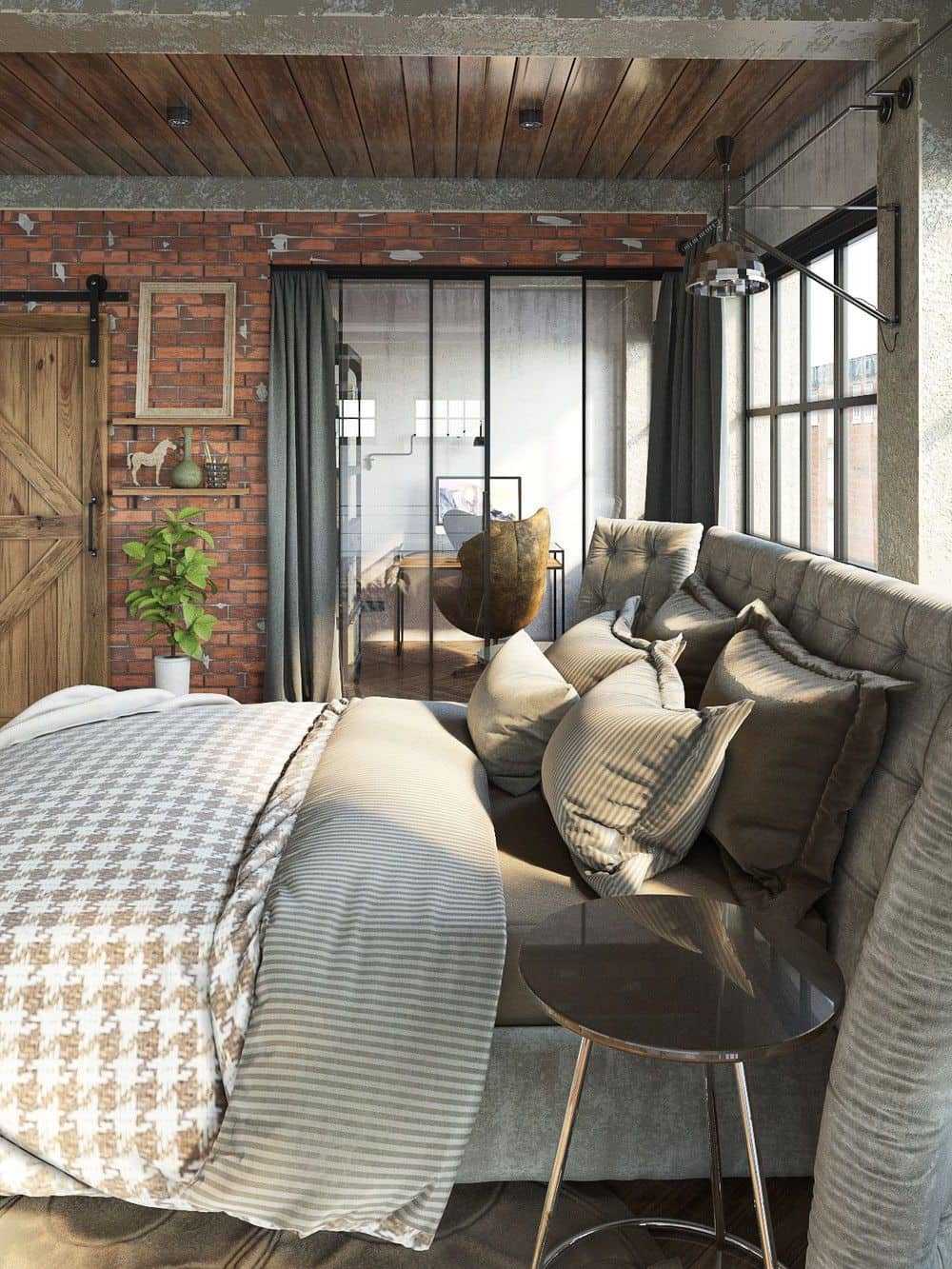 В стиле лофт необходимо оформить хотя бы еще одну комнату. Лучше соединить кухню с гостиной, если в этом стиле весь дом выполнен не будет. Стиль хорошо соседствует с классикой, хай-теком, минимализмом. У нас есть отдельная статья о сочетаниях лофта с другими стилями. В осутствии же стен, зоны можно отделить занавесками, как показано на фотографиях ниже.