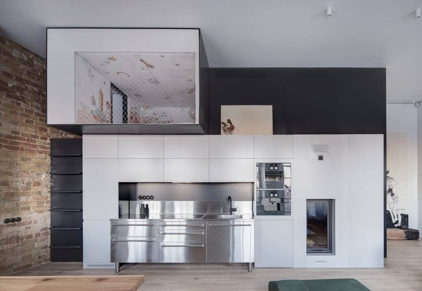 Соединить кухню с лоджией или балконом. А еще лучше — с гостиной! В первом исполнении в кухне появятся огромные окна. Во втором — студия расширит визуальное пространство обеих комнат, и больше будет походить на промышленное помещение.