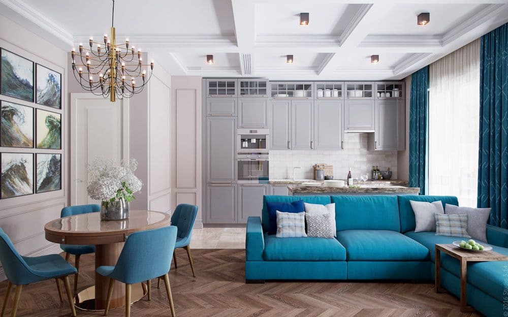 Гармония и комфорт в кухне-гостиной, оформленной в стиле неоклассика