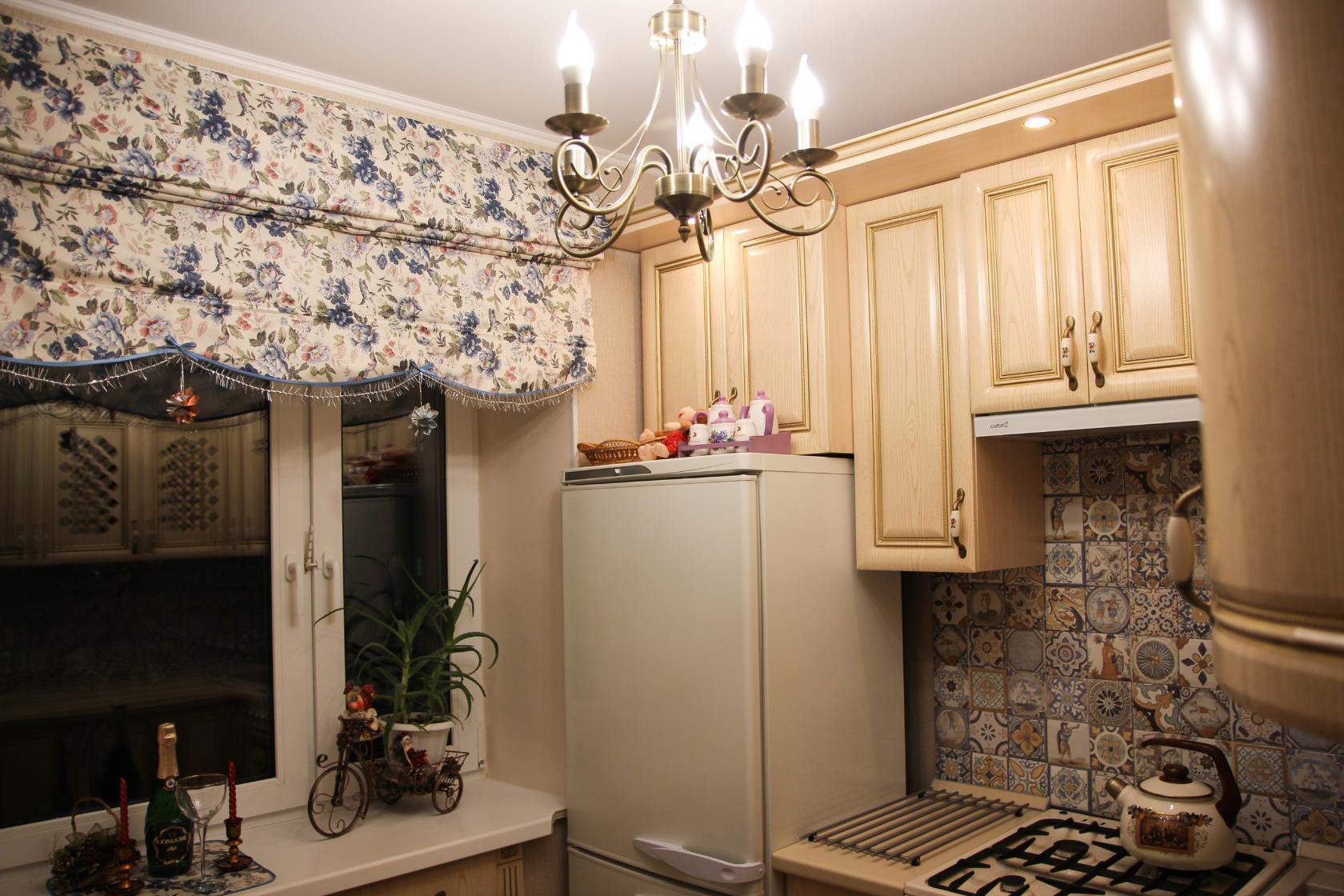 Для маленьких кухонь лучше выбирать светлые короткие шторы: римские, рулонные, витражные, «кафе» или классические занавески с умеренной сборкой
