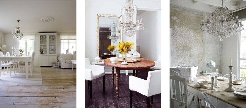 Составляющие для таких интерьеров приобретались на барахолках, старую мебель реставрировали и дополняли соответствующими деталями, таким образом, создавалась потертая элегантность в отделке помещений. В комнатах, оформленных в таком стиле, царила романтичная, комфортабельная и уютная атмосфера.
