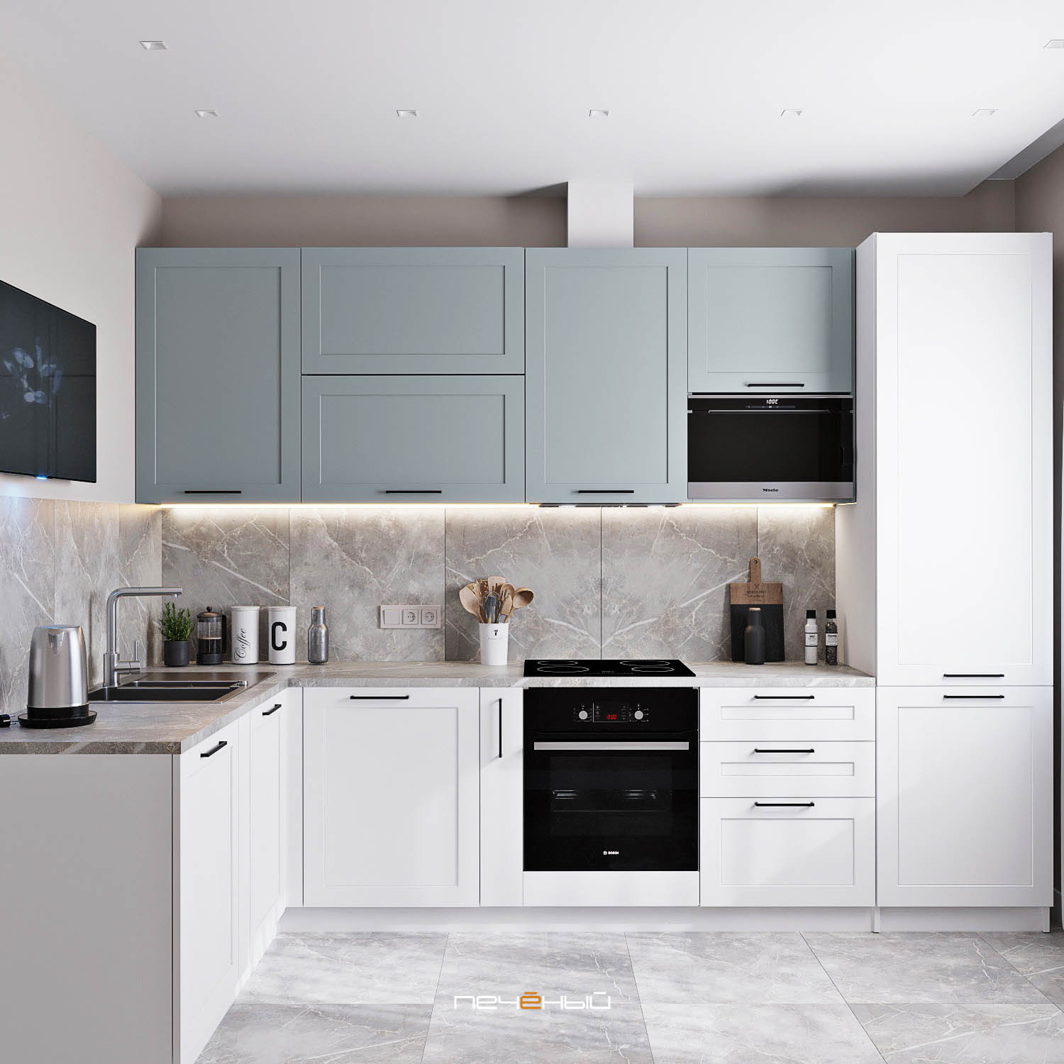 Многогранные оттенки серого – находка для ценителей холодного функционального минимализма и хай-тека. Благодаря белому такая кухня не кажется слишком мрачной, выглядит светлее и легче. Это хороший выбор, если окна выходят на солнечную сторону и в комнате всегда светло и жарко – иллюзия прохлады и легкости обеспечена.