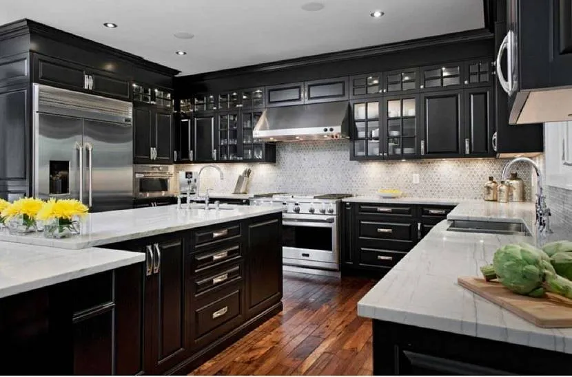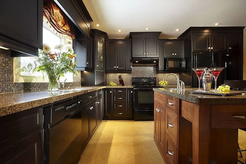 - Строгий и элегантный внешний вид. Темные цвета создают впечатление стильности и элегантности в интерьере кухни. Они помогают создать атмосферу роскоши и уютности.