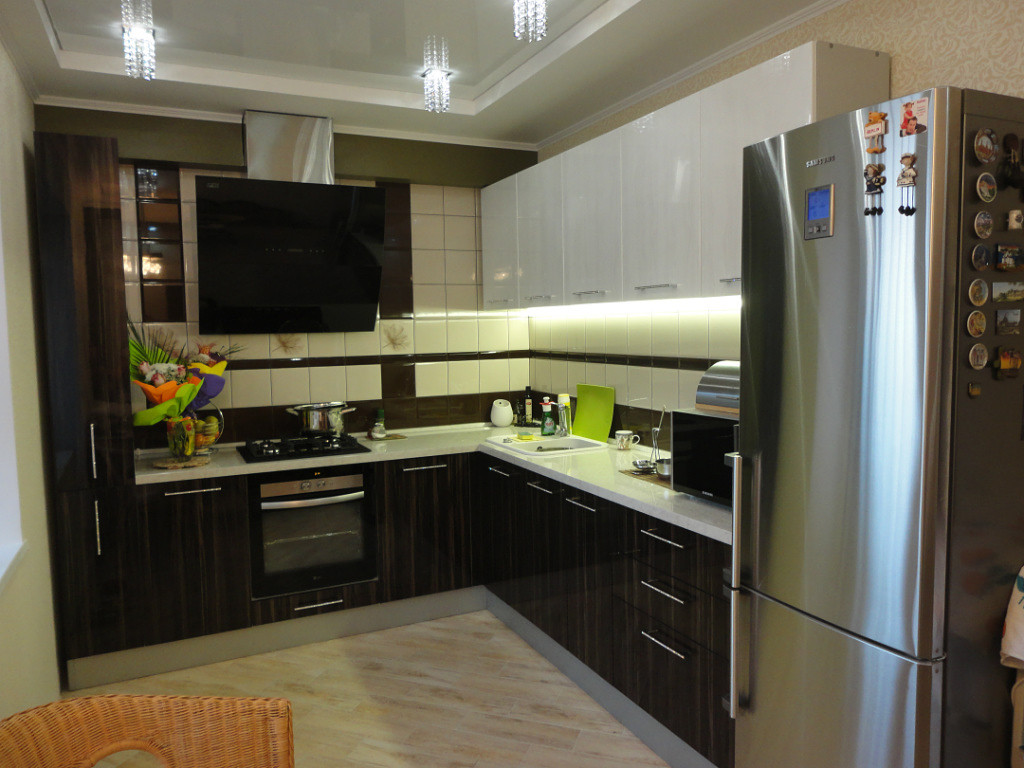 ^ Дизайн кухни зебрано в фото обзоре