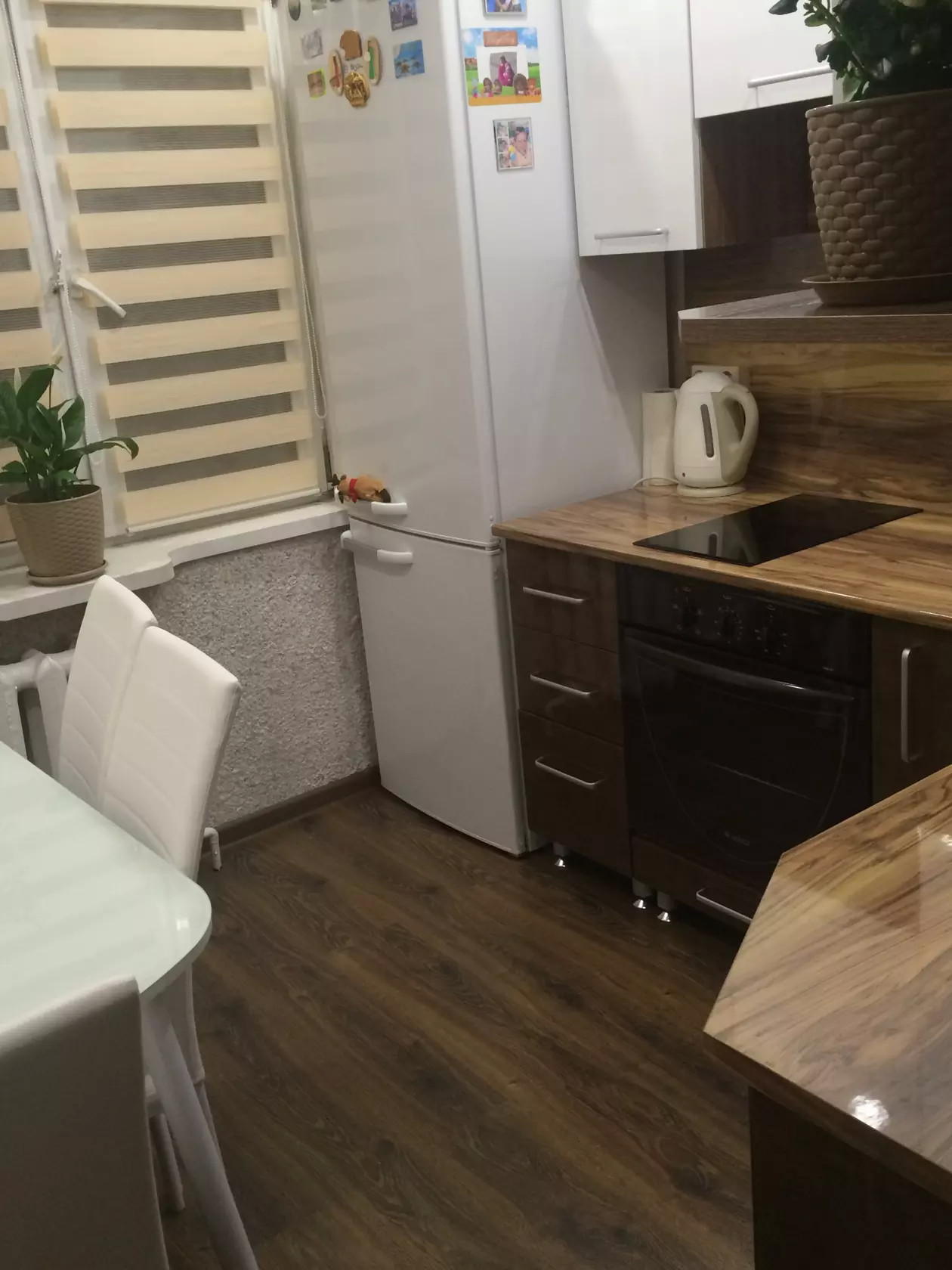 Классическая ошибка, которую часто допускают при отделке кухни — когда в цвете зебрано выполнен не только фасад гарнитура, но и пол.