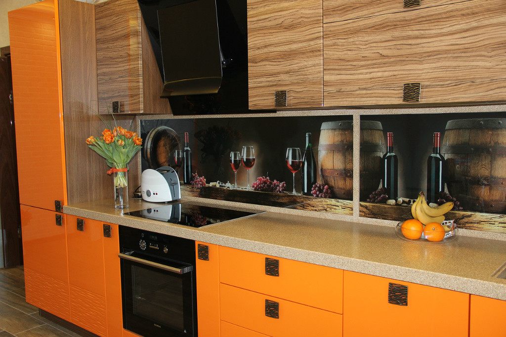 Фото: Яркая кухня ребрано с оранжевым