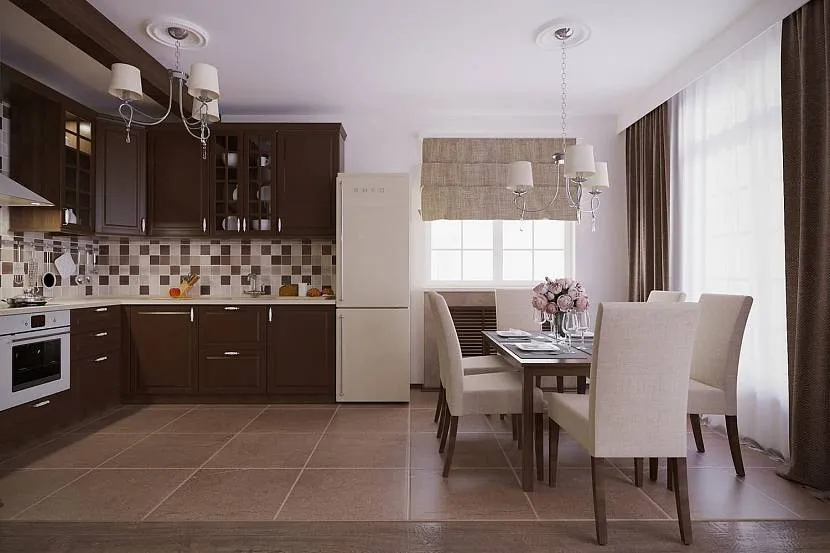 Этот жанр оформления кухонных интерьеров, пришедший из XVI века дворцовой эпохи, традиционно остается на вершине популярности. Он отличается строгостью, функциональностью, элегантным исполнением. Хозяйки отмечают удобство и красоту такого дизайна.