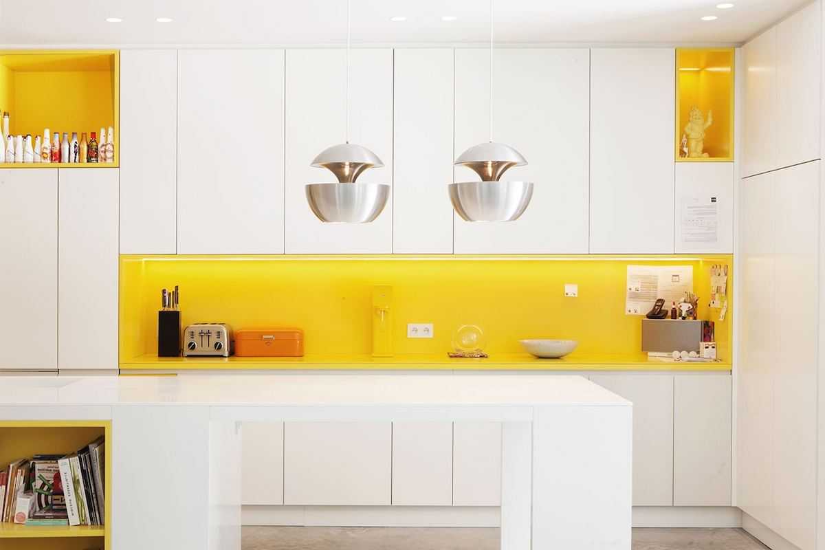 Гарнитур необычного оттенка, к примеру, желтого, постарайтесь обыграть в других деталях интерьера — сделав черно-желтый обеденный стол. Тут главное соблюдать умеренность: слишком пеструю кухню не украсит даже самая качественная и дорогая мебель.