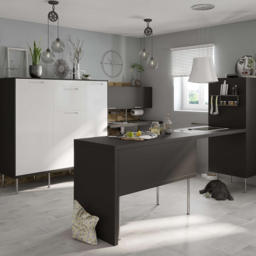 Минималистичная форма, переплетающаяся с матовой отделкой, характерна для серии мебели Rey от Leroy Merlin. Использование модных оттенков серого придаст изюминку любой кухне, независимо от того, в каком стиле она оформлена.