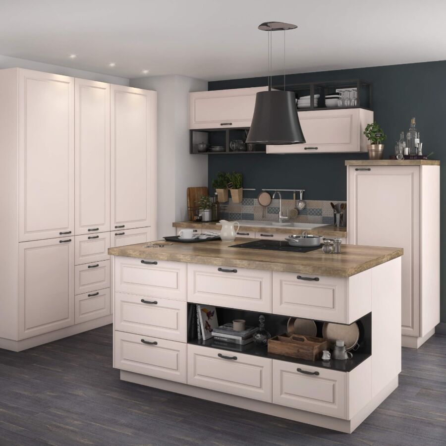Фасады в стиле прованс создают уютную и романтичную атмосферу в кухне. Они обычно выполнены в пастельных цветах, таких как лаванда или мятный, с декоративными элементами, напоминающими французский сельский стиль. Эти фасады подойдут для любителей натуральных и нежных оттенков.