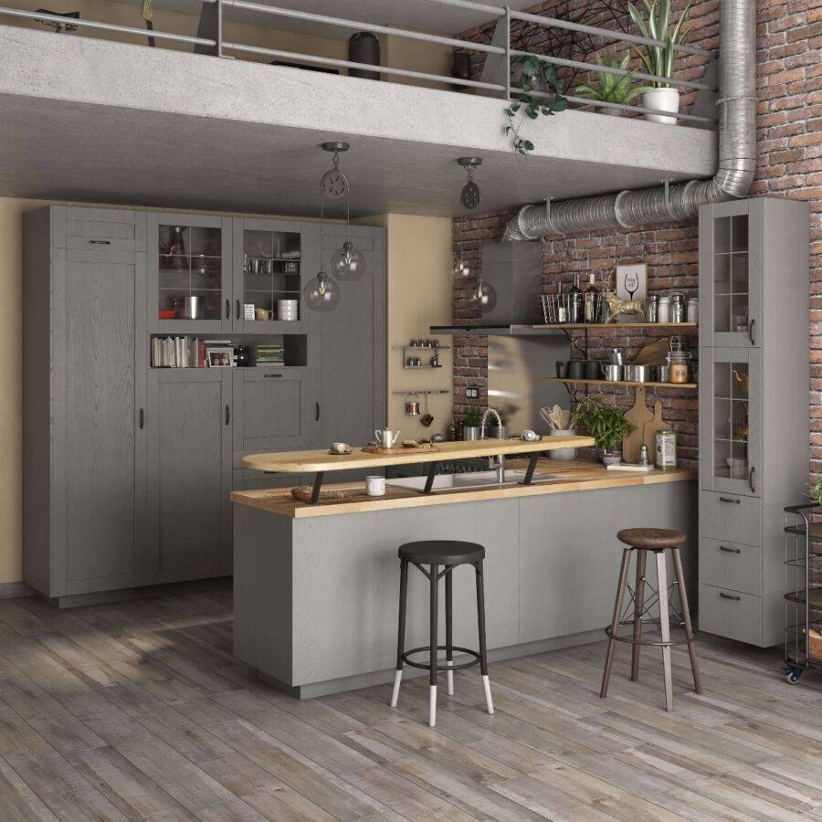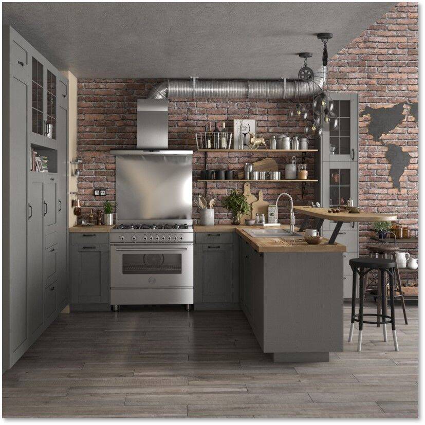 Фасады в стиле лофт придают кухне индустриальный и неформальный вид. Они часто выполнены из грубых материалов, таких как металл и дерево, и могут иметь небрежные текстуры. Эти фасады подойдут для тех, кто предпочитает современный стиль с акцентом на сырой эстетике.