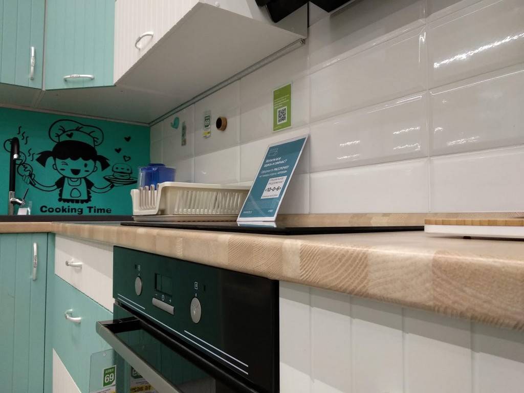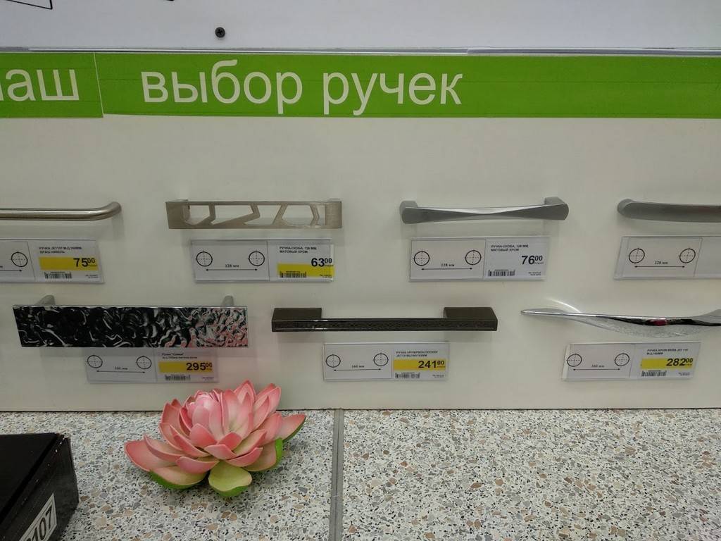 Гуляя по магазину, можно прицениться на основе выставочных образцов в магазине. В Леруа Мерлен дизайнеры составляют для покупателей несколько готовых проектов и вариантов сочетаний фасадов, столешницы и фурнитуры.