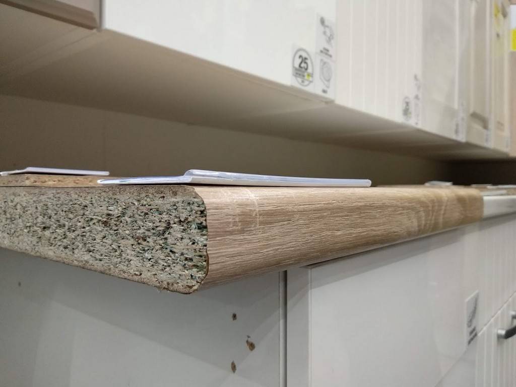 Столешницы представлены в основном из ДСП с ламинированным, пластиковым покрытием. Самыми дешевыми из них являются те, что не обладают влагостойкостью, поэтому срок их службы совсем невелик. О качестве можно судить уже в магазине, оценив начинку изделия и небольшую толщину защитного ламината.