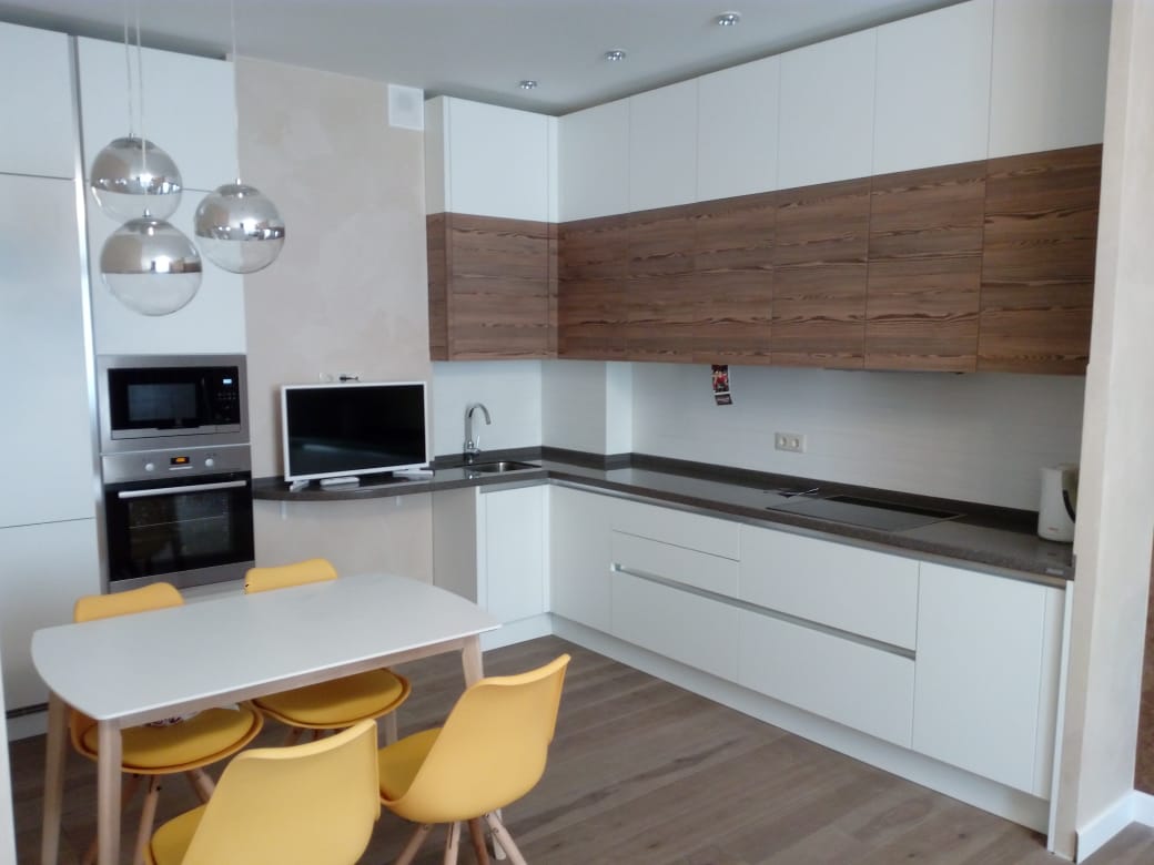 Это простые формы, гармоничные линии, где-то даже минимализм. Открытость пространства и легкость конструкции, построенные на контрастах, дают огромные возможности для экспериментов с дизайном современной кухни.