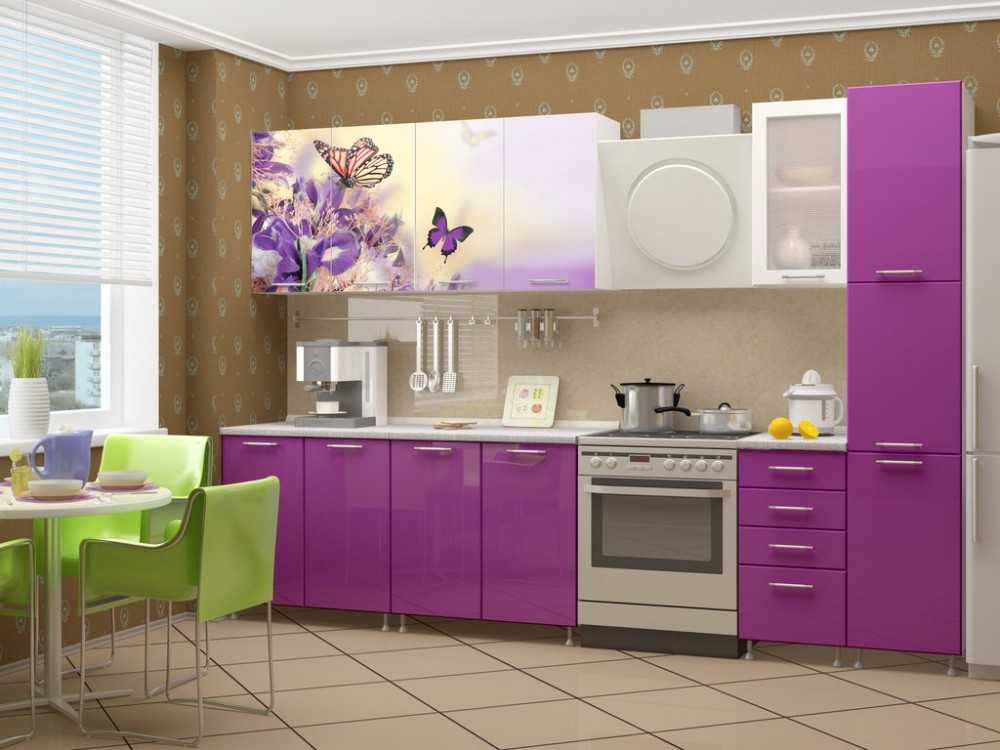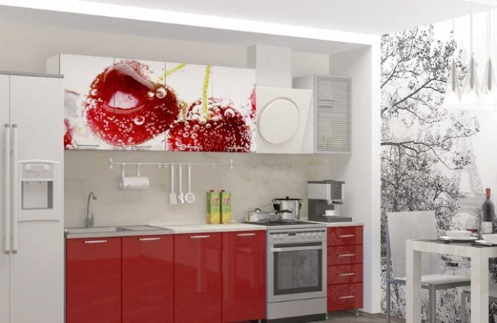 Чаще всего для оформления кухонной комнаты выбирают пейзажи природы, изображения растений, или ярких животных. Особой популярностью пользуются насыщенные по цветовой гамме фрукты и овощи. Такие рисунки хороши для небольших помещений, угловых кухонь. Верхние шкафы расписывают яркими, насыщенными оттенками, нижнюю конструкцию делают нейтрального цвета.