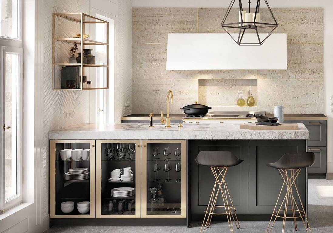 Не нужно думать, что это сделает кухню визуально богаче. Поверьте, внешний вид у такого дизайна крайне нелепый. Пропорции белого и золотого в качественной кухне такого вида должен быть примерно 85 на 15 соответственно.