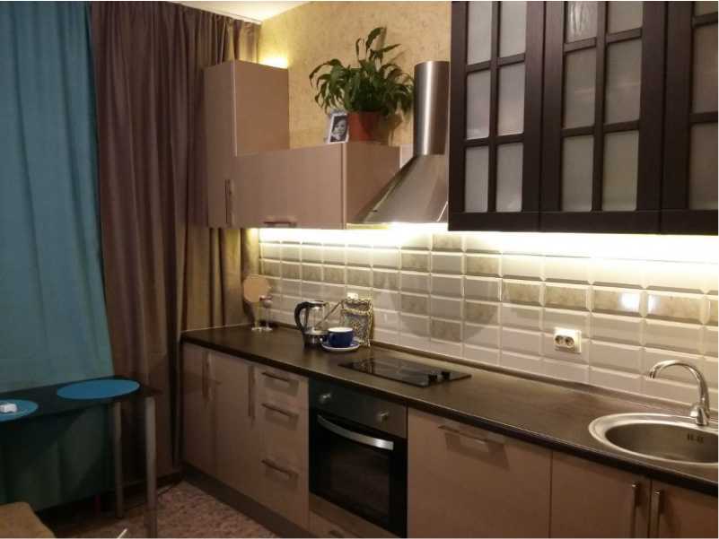 Кухня 9 кв.м., размеры гарнитура — 110х230 см. Гарнитур с доводчиками и гарнитуром обошелся в 1200 долларов. Каменная столешница 3 метра — около 400 долларов. Мойка и смеситель — около 70 долларов. Монтаж кухни и столешницы — около 320 долларов.