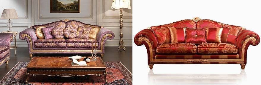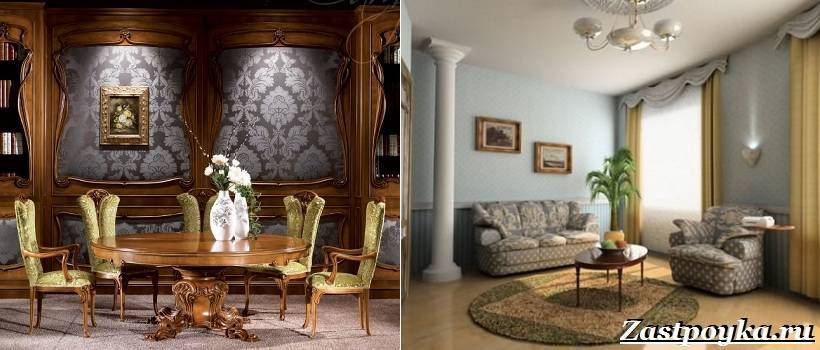Бывают смелые сочетания черной мебели с белыми стеклами, диванов и кресел самых обычных размеров с одновременной пышностью и объемом форм. В обивке мебели, шторах и обоях должно быть идеальное сочетание.
