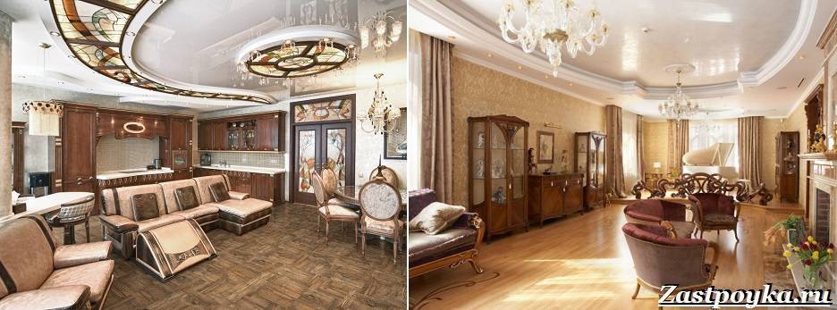 Оцените размеры помещения, предназначенного для отделки. Дизайн в этом стиле изначально предполагает большое помещение, высокие потолки. Идеален такой вариант для загородного дома и квартиры с высотой потолка 270 – 280 см и выше.