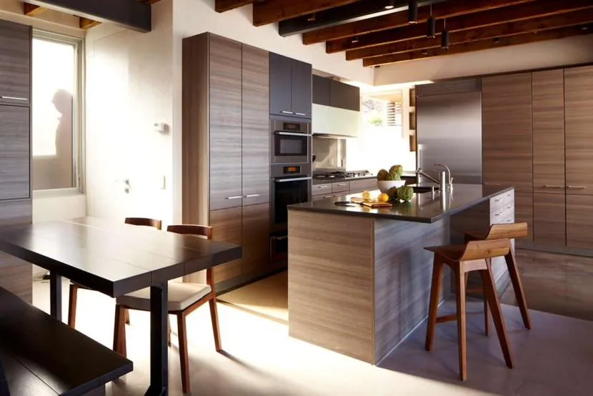 - Модерн стал более функциональным, бытовая техника не прячется за фасады, а выставляется напоказ.