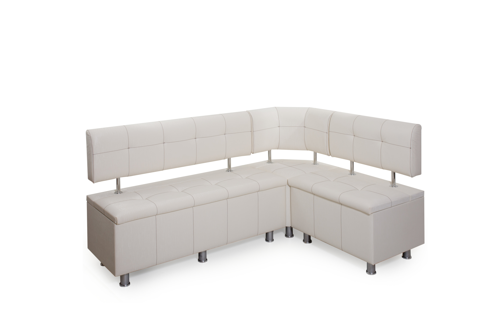 Популярная угловая модель кухонного дивана. Благодаря удобному дизайну (закругленные углы и простые формы) предполагает долгие и удобные часы сиденья. Каркас выполнен из ели, ДСП и ДВП. Наполнитель – пенополиуретан. Внешняя обивка выполнена из кожи.