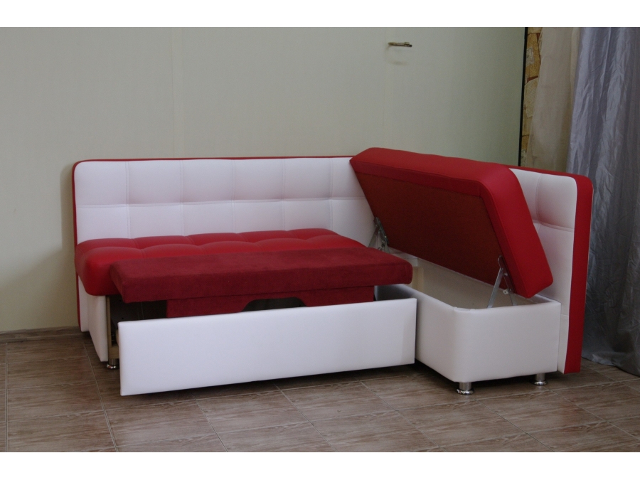 Благодаря классическому дизайну он подойдет абсолютно для любой кухни. В сложенном виде имеет два сидячих места. Из-за его миниатюрных размеров его нередко влюбленные парочки – на нем удобно, например, смотреть фильмы, усевшись в обнимку. Выкаткой механизм обеспечивает два полноценных спальных места.