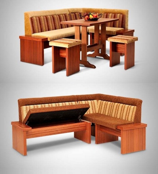 Кухонные диваны могут отличаться не только по внешнему виду, но и по конструкции