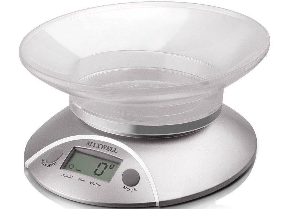 Весы для кухни Maxwell MW-1451 имеют электронный интерфейс. Прибор оборудован съёмной пластиковой миской объёмом 1 литр.