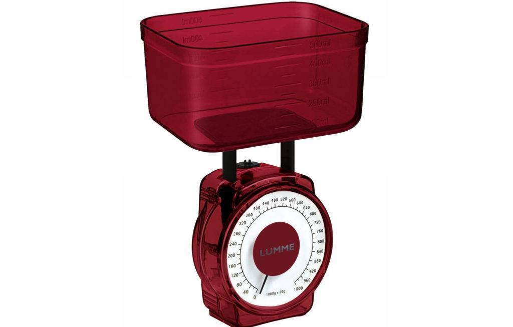 Миниатюрные механические кухонные весы Lumme LU-1301 не занимают много места. Их удобно перемещать и переносить. Максимальная нагрузка – 1 кг.