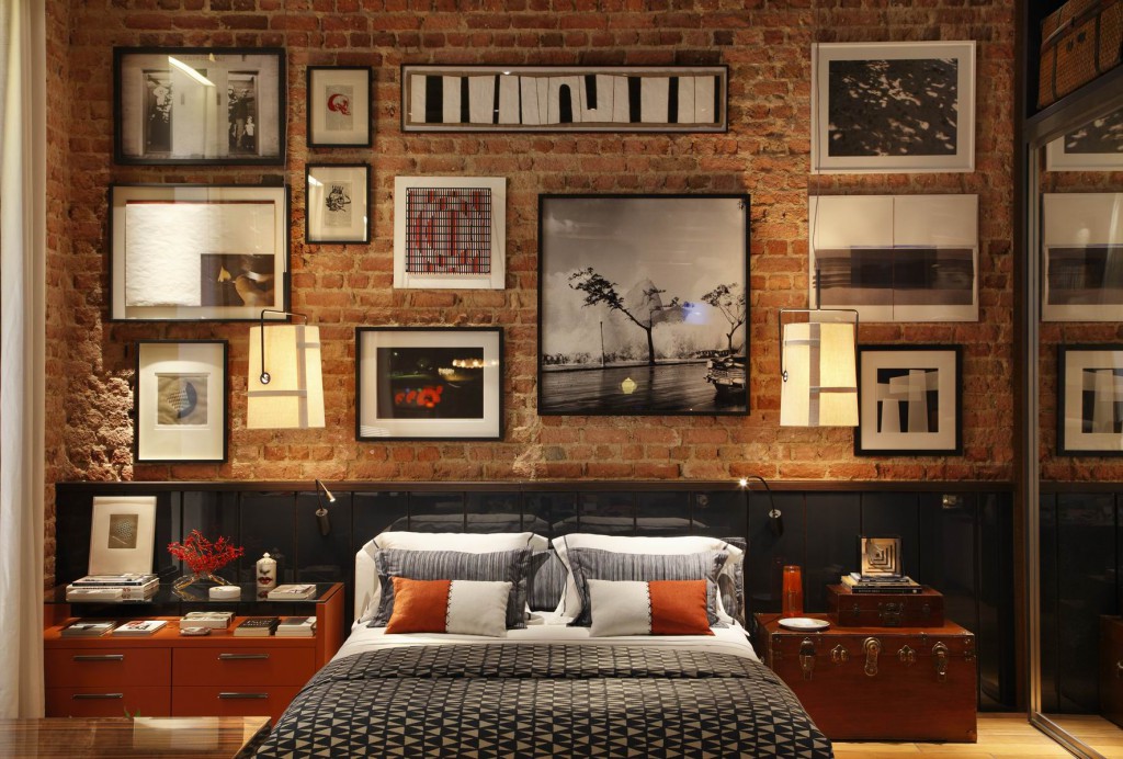 Уравновесить грубую поверхность можно с помощью легких занавесок, напольного ковра или красивого покрывала. Стена с кладкой отлично подойдет для экспозиции картин, особенно, если это современное искусство.
