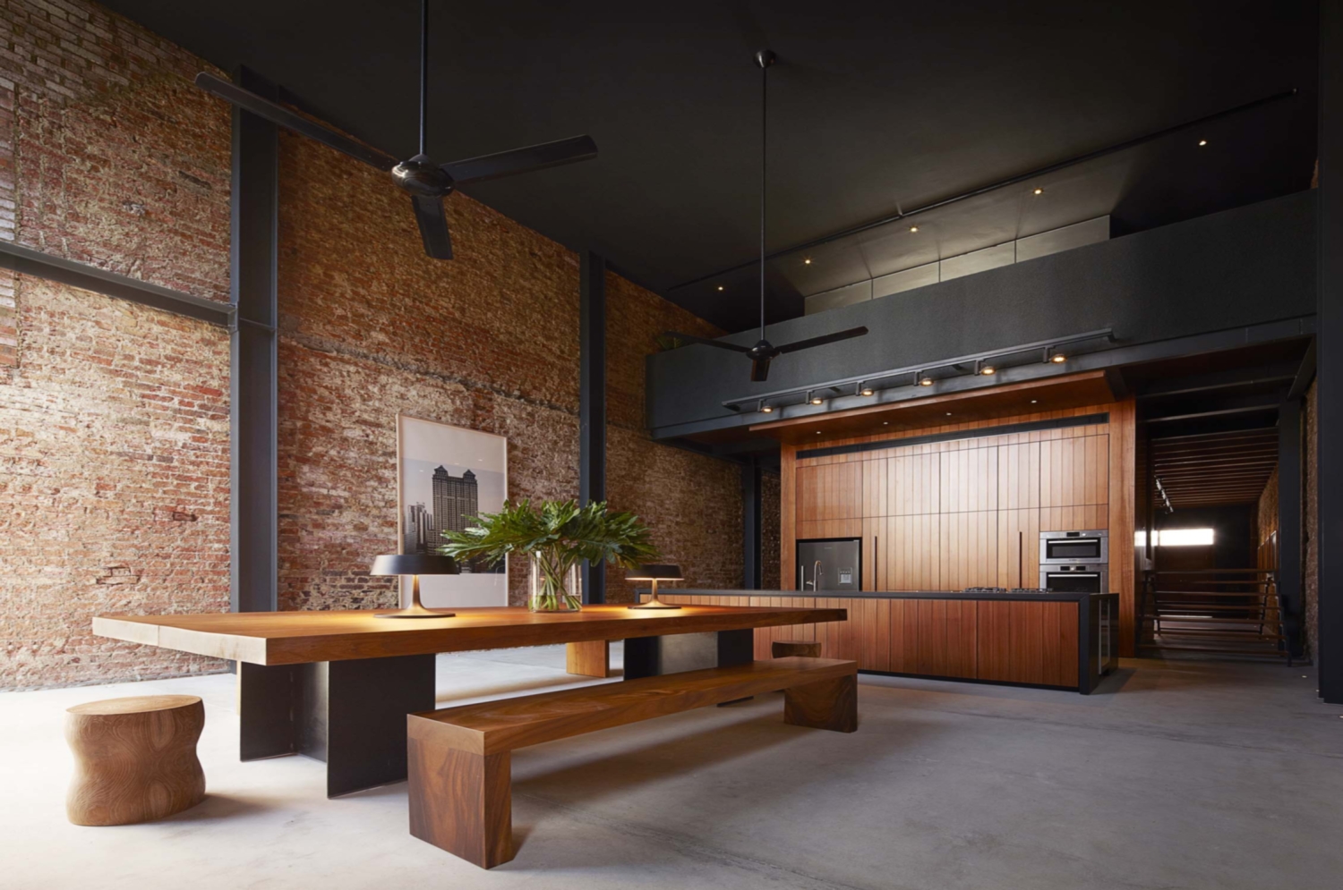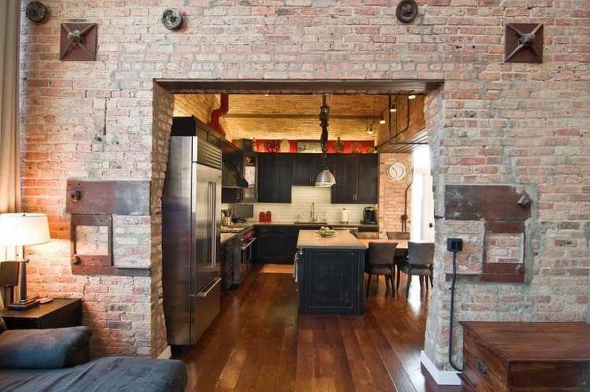 Настоящая кирпичная кладка идеально подходит для индустриальных стилей интерьера