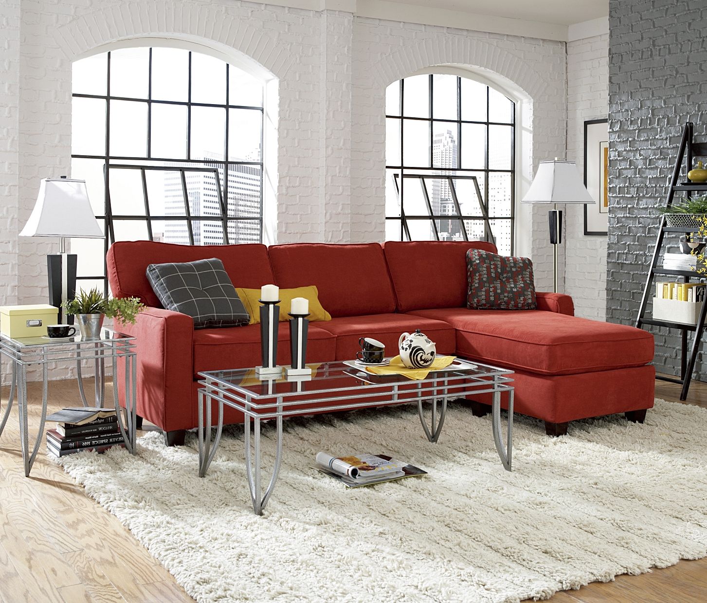 Палитра зависит от оттенка стен. Так, белый кирпич отлично сочетается со всеми цветами, но лучше придерживаться светлой гаммы, которая визуально наделит комнату светом. Красный кирпич выглядит основательно и вступит в «союз» со сдержанными, естественными оттенками.